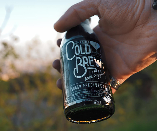 Kendi kavurduğumuz %100 Arabica kahve çekirdeklerimizi öğütüp en az 18 saat boyunca soğuk demleme yapıyoruz ve yağı azaltılmış sütle harmanlıyoruz.